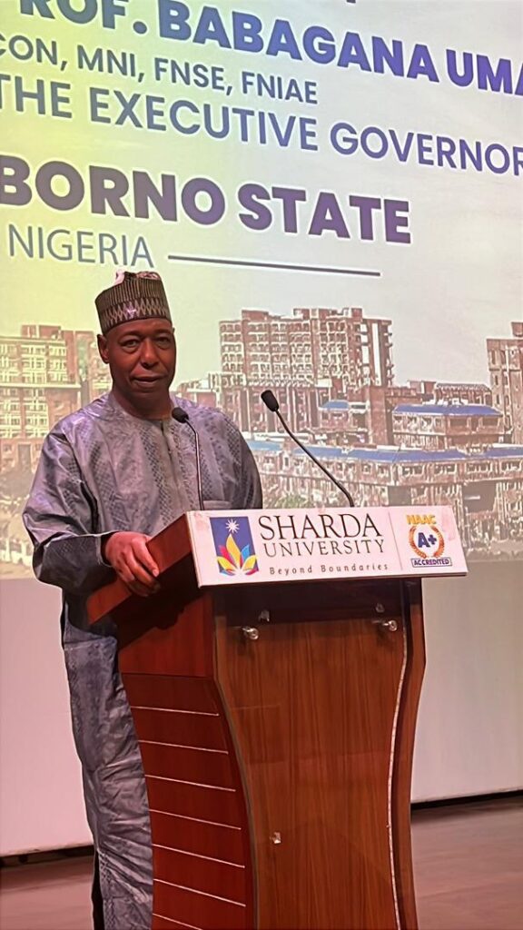The Governor who is on an official visit to India, first met with beneficiaries of the Borno State scholarship scheme at Sharda University in Noida.He reassured them of his administration’s commitment to their welfare and academic success and encouraged them to focus on their studies.