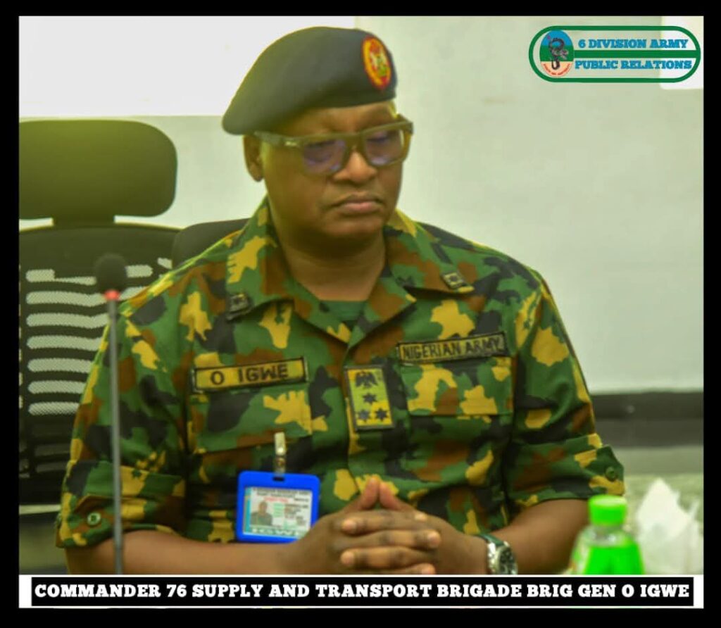 Major General Emmanuel Eric Emekah, at the Headquarters 6 Division, Port Harcourt Barracks.Speaking further, the CCST reiterated that upon assumption of command, he outlined his mission statement aimed at guiding personnel of the Nigerian Army Corps of Supply and Transport (NACST) towards achieving the command philosophy of the Chief of Army Staff, Lieutenant General Waidi Shaibu.