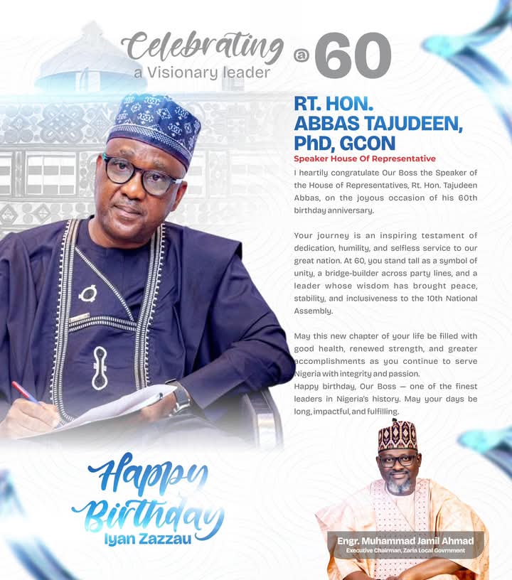 He noted that at 60, Rt. Hon. Abbas Tajudeen stands tall as a unifying figure and bridge-builder across party lines, whose wisdom has fostered peace, stability, and inclusiveness in the 10th National Assembly.