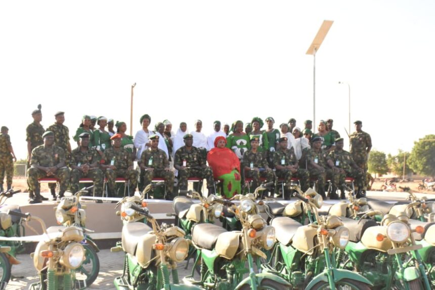 The General Officer Commanding 8 Division and Commander Sector 2 Joint Task Force (North West) Operation FANSAN YAMMA in a significant move to enhance the economic well-being of families of personnel in Giginya Cantonment , Sokoto , donated 20 new motorcycles to women in the cantonment.