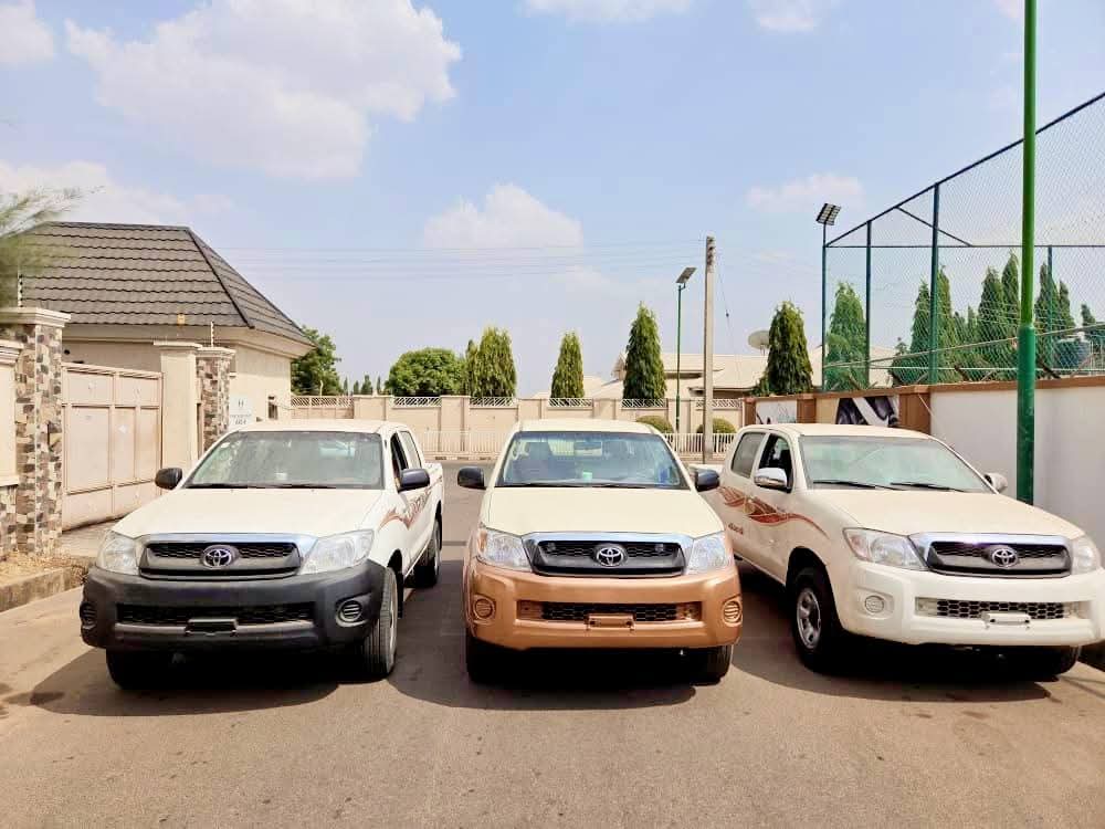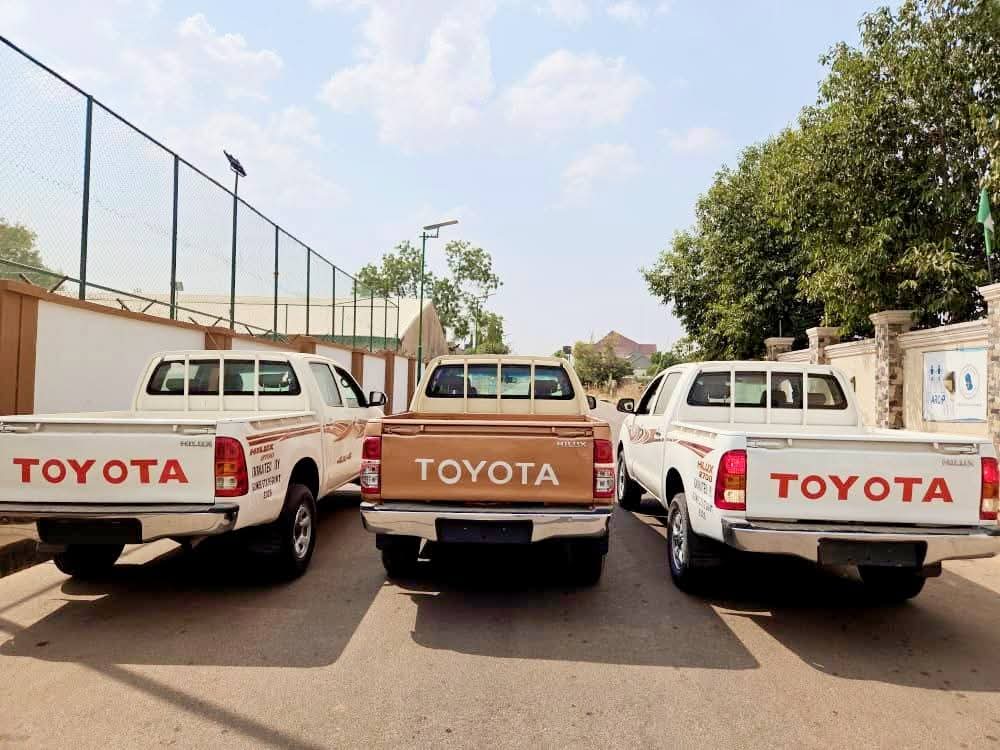 The intervention includes the donation of two (2) Toyota Hilux vehicles to the Hunters Association of Gombe State, led by Alhaji Rabiu Baushe (Baushen Gombe), and one (1) Toyota Hilux vehicle to the Vigilante Group of Nigeria (VGN), Gombe State Command, under the leadership of Abubakar Yaro.