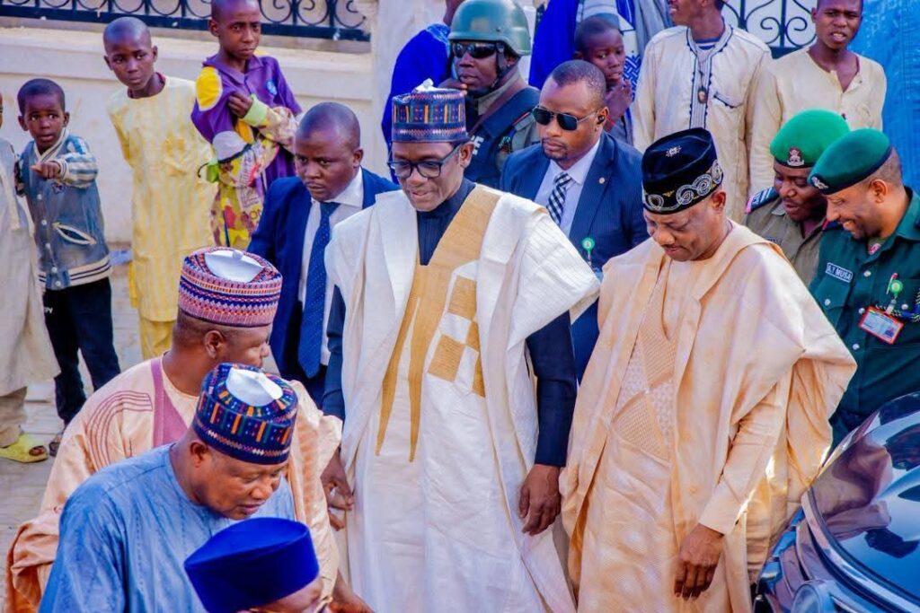 Gov. Buni along with the Senior Special Assistant to the President on Political Affairs and other Matters, Alh. Ibrahim Kabiru Masari, prayed for the repose of the soul of the late Sheik.