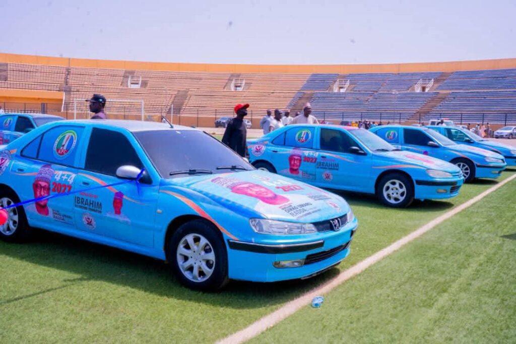 The event, held at Muhammadu Dikko Stadium, included the presentation of seven luxury vehicles to APC leaders and loyal supporters.