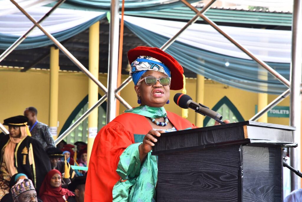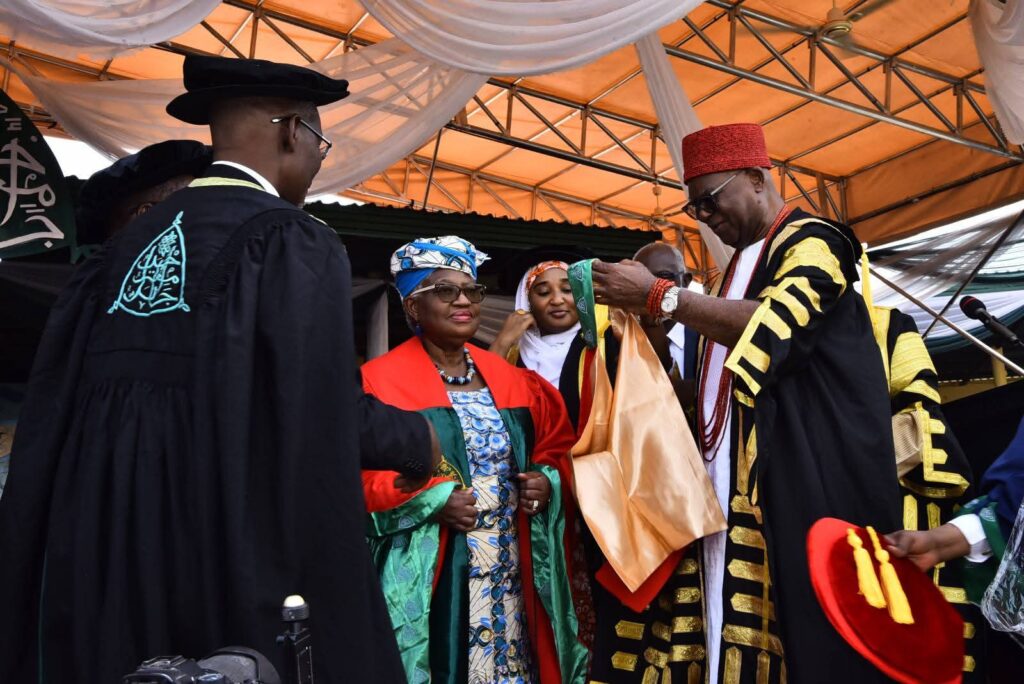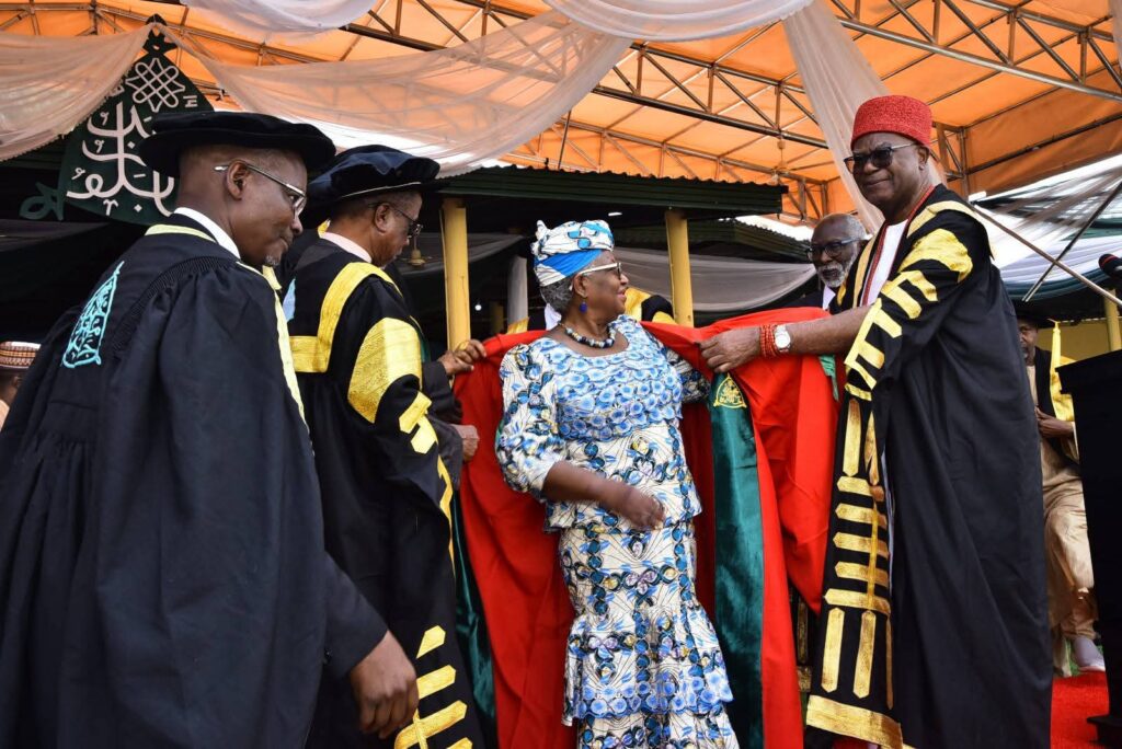 .The university, at the 45th Convocation Ceremony, conferred an Honorary Doctor of Science Degree Honoris Causa on Okonjo-Iweala, GCON. This was in acknowledgment of her exceptional contributions to national and global developments.