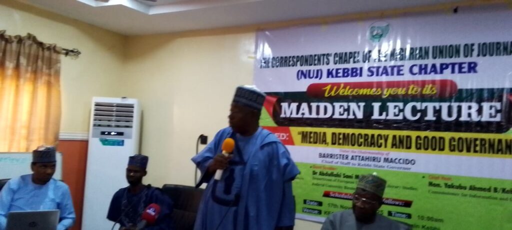 The Chief of Staff to Kebbi State Governor, Barrister Attahiru Maccido and Kebbi State Commissioner for information and Cultures, Alhaji Ahmed Yakubu stated this during the maiden lecture organized by the Correspondent’s Chapel of NUJ, Kebbi State Council, titled ” Media, Democracy and Good Governance”, in collaboration with the office of the Special Adviser to the Governor on Public Enlightenment and Orientation,Ibrahim Abubakar Jombali. is the Chairman of the occasion,