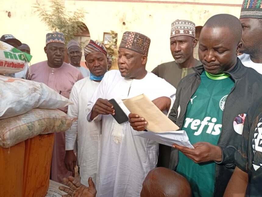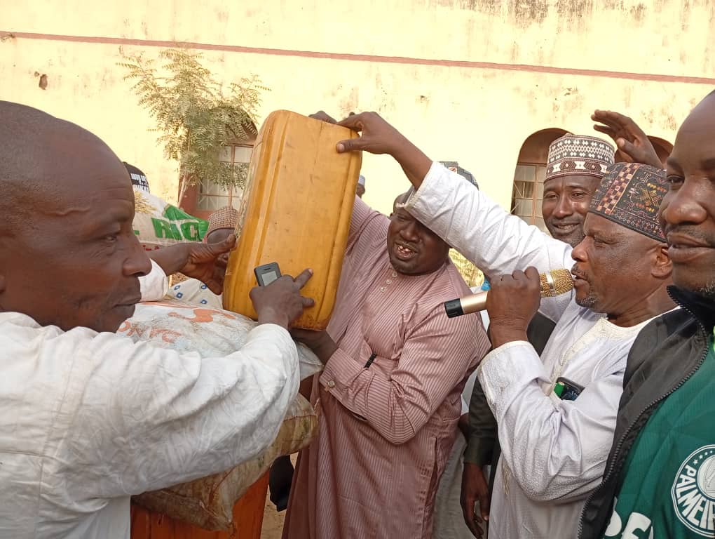 Ya bayyana cewa kowace mazaba za ta karbi buhunan shinkafa 15 mai kilo 50, jarkoki uku na man girki mai lita 25, buhu guda na gishiri da buhu guda na kayan (Maggi), baya ga kudin cefane da za a bai wa kowace mazaba.