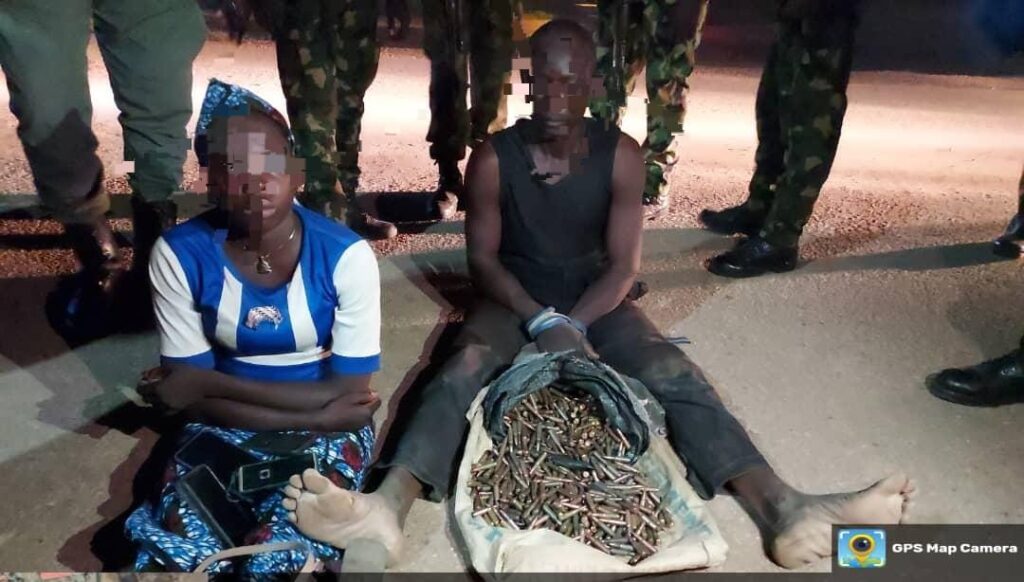 The suspects, Mr. Abdullahi Balarabe (40) and his wife, Shafaatu Abdullahi (18), were intercepted at a snap checkpoint established by the joint troops of JTF OPEP and OPFY at the outskirts of Saminaka in Lere Local Government Area of Kaduna State.