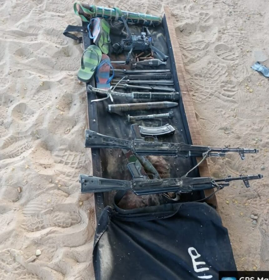 Three terrorist bodies were recovered along the withdrawal route, alongside four AK-47 rifles, five anti-tank bombs, three locally fabricated mortar bombs, one armed drone, six fully loaded 7.62mm NATO magazines, barbed wire cutters, specialised ammunition, poisoned arrows and other items abandoned in flight, while one wounded soldier was airlifted by a Nigerian Army Aviation helicopter for advanced medical care.