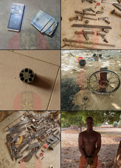 A thorough search of the site led to the recovery of six locally fabricated pistols, assorted tools and instruments believed to be used in the production of illegal weapons, the sum of ₦40,500, and a mobile phone found in the possession of the suspect.