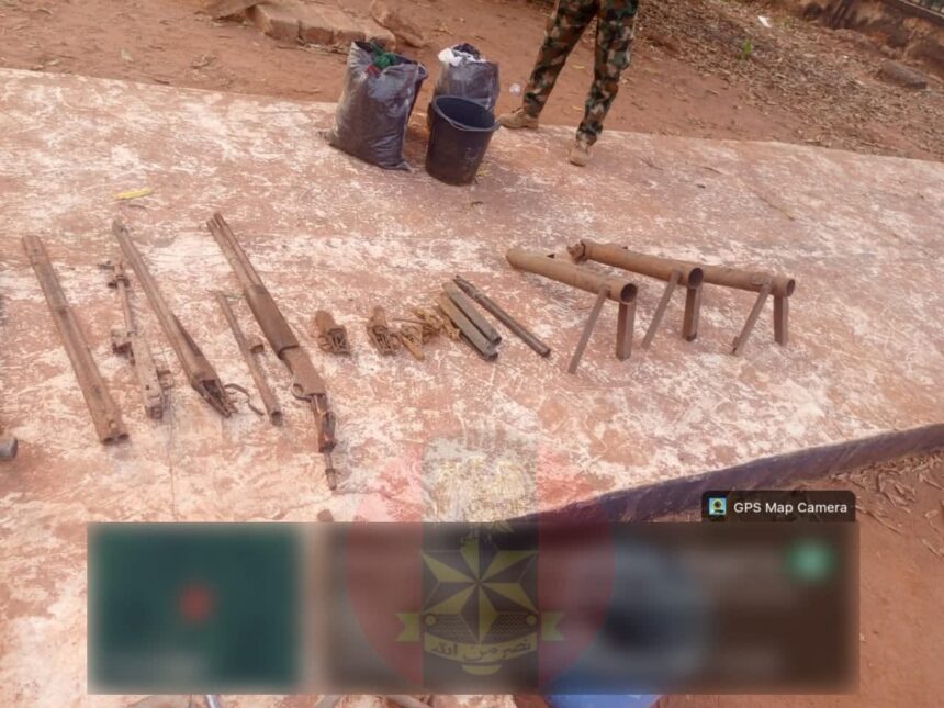 During the operation, several insurgent camps were identified, thoroughly exploited, and destroyed. Items recovered include, Pump action guns, locally made dane guns, assorted rifle magazines, different rifle working parts, belts of ammunition and cutting machines.