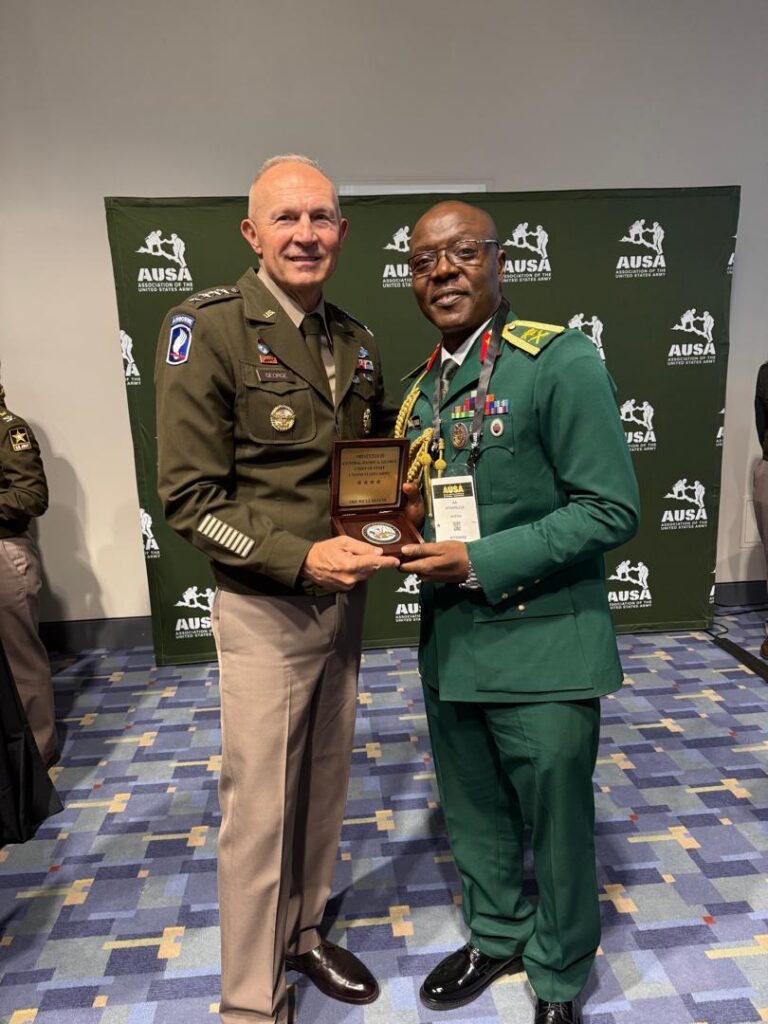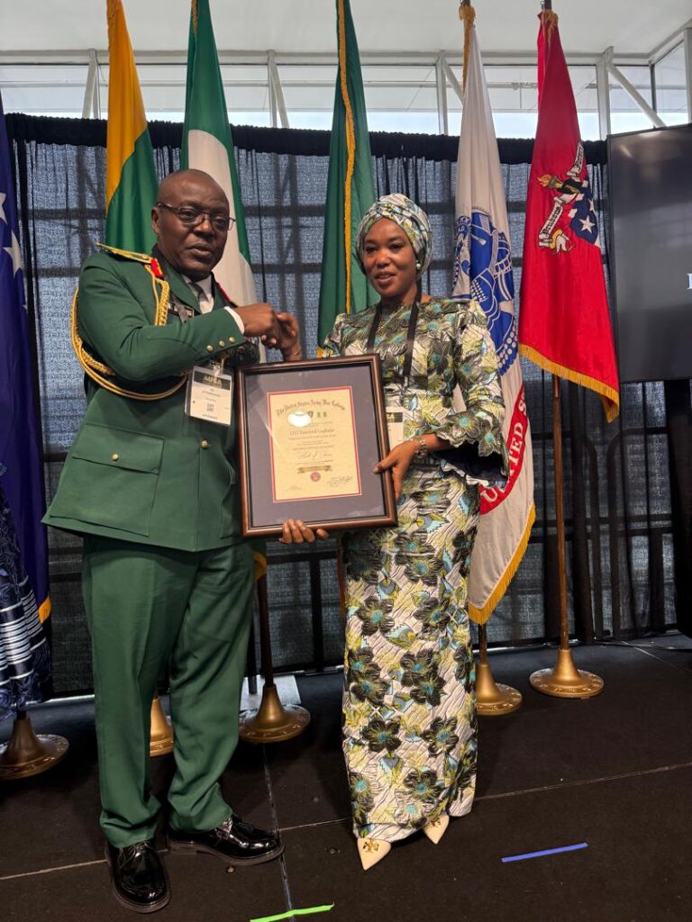 The United States Army War College (USAWC) has posthumously conferred one of its highest international honours on the late Lieutenant General Taoreed Abiodun Lagbaja, the 23rd Chief of Army Staff (COAS) of the Nigerian Army, with his induction into the prestigious International Hall of Fame (IHOF).The distinguished recognition, which took place on Monday, 13 October 2025, was conferred during the opening ceremony of the ongoing Association of the United States Army (AUSA) Annual Convention at the Walter E. Washington Convention Centre, Washington D.C., United States of America.In a solemn but yet colourful ceremony, the Commandant of the USAWC, Major General Trevor J. Bredenkamp, presented the posthumous honour in acknowledgment of the late General Lagbaja’s sterling leadership, visionary service and exceptional contributions to the advancement of military professionalism and international peace and security. The recognition underscores his outstanding achievements as an alumnus of the institution who rose meritoriously to the zenith of his military career as Nigeria’s 23rd Chief of Army Staff.A statement signed by Lieutenant Colonel Appolonia Anele acting director army public relations said the late Lieutenant General Lagbaja was one of the six eminent inductees honoured at this year’s event. His induction represents a historic milestone as he became the first ever Nigerian Army officer to be enshrined in the USAWC International Hall of Fame in the institution’s illustrious 124 year history, a testament to his enduring legacy of excellence and service to humanity.Representing the Chief of Army Staff, Lieutenant General Olufemi Oluyede, at the ceremony was Major General Adeleke Ayannuga, who received the honour alongside Mrs Maria Abiodun Lagbaja on behalf of the late COAS.Among the dignitaries in attendance were the Director General, Nigerian Army Heritage and Future Centre, Major General G.O. Adesina; Director General, Defence Headquarters Joint Doctrine and Warfare Centre, Major General G.T.O. Ajetunmobi, Mrs Deborah Aboderin of the Office of Security Cooperation, U.S. Embassy, Abuja.Also present were the Nigerian Defense Attaché to the United States, Army officers undergoing higher professional military education at the National Defense University, Washington D.C, the United States Army War College and the U.S. Army Command and General Staff College, alongside other senior Nigerian Army officers participating in the AUSA 2025 Annual Convention.The Chief of Army Staff, Lieutenant General Olufemi Oluyede, expressed profound pride in this singular honour bestowed upon one of the Nigerian Army’s most illustrious and visionary leaders. He affirmed that the recognition not only immortalizes the late Lieutenant General Lagbaja’s distinguished service but also reinforces the Nigerian Army’s commitment to the universal ideals of professionalism, discipline and dedication to global peace and security.